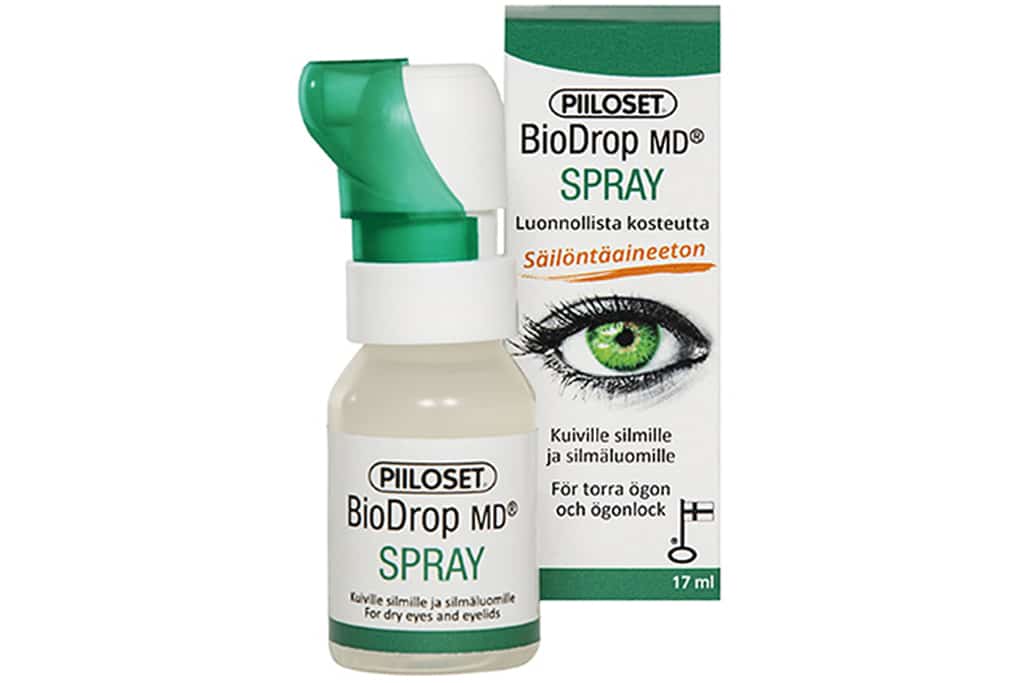 Suomalainen Piiloset on kehittänyt kuivasilmäisyyden hoitoon BioDrop-nimisen silmäsuihkeen. Sen väitetään olevan “maailman ensimmäinen silmäsuihke, jossa hyödynnetään tyrniöljyn ainutlaatuisia kosteuttavia ominaisuuksia”. Voiko tyrniöljy kosteuttaa silmiä?