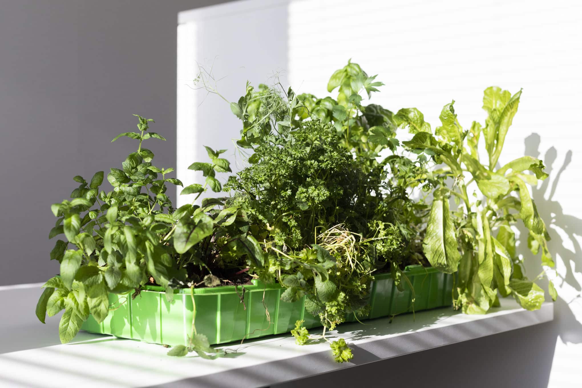 Etenkin talvikuukausina valoa ­kannattaa pitää päällä koko ajan, sillä useimmat salaatit ja yrtit kasvavat parhaiten jatkuvassa valokylvyssä.